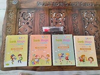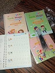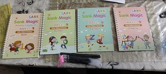 Magic Practice Copybook (4 Book + 10 Refill) (A-127)Magic Practice Copybook for Kids – Reusable Handwriting Book Set with 4 Books, Magic Pen & 10 Refills (Ages 3–8)